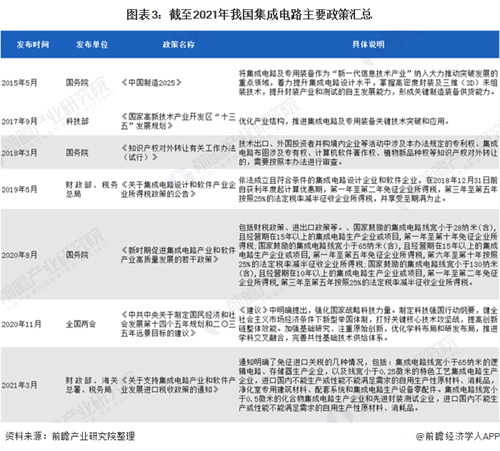 图表3:截至2021年我国集成电路主要政策汇总